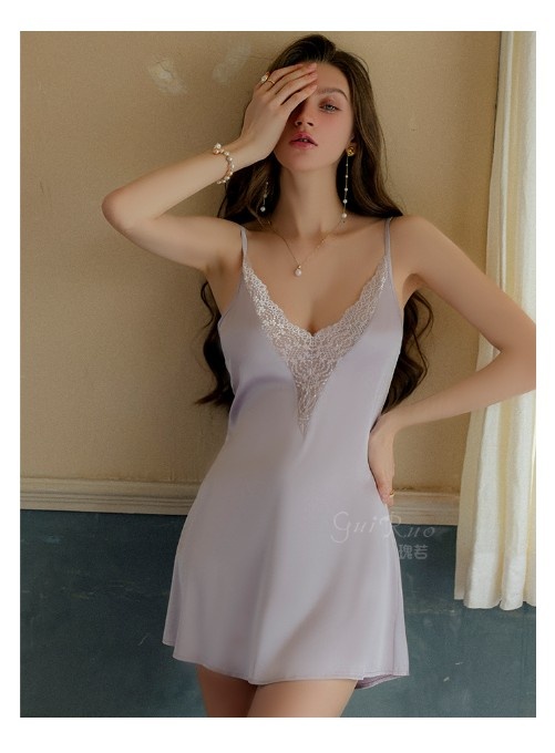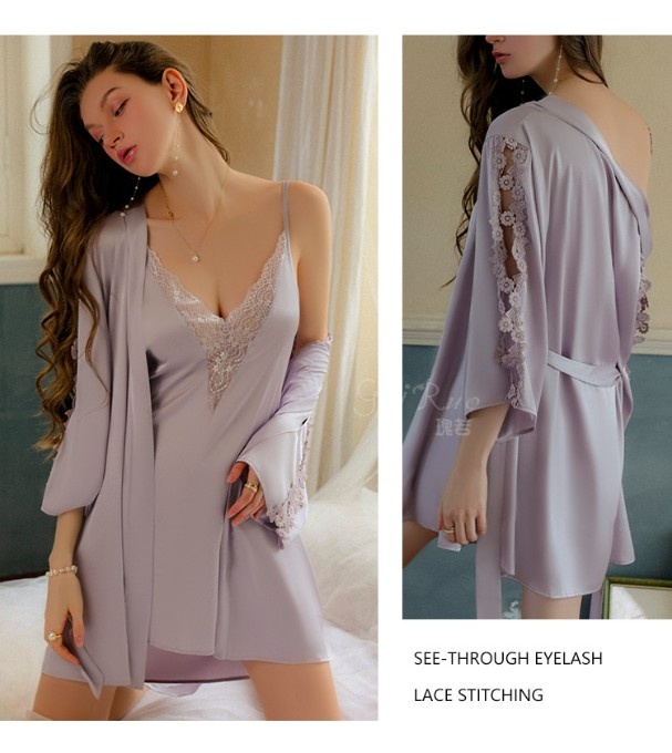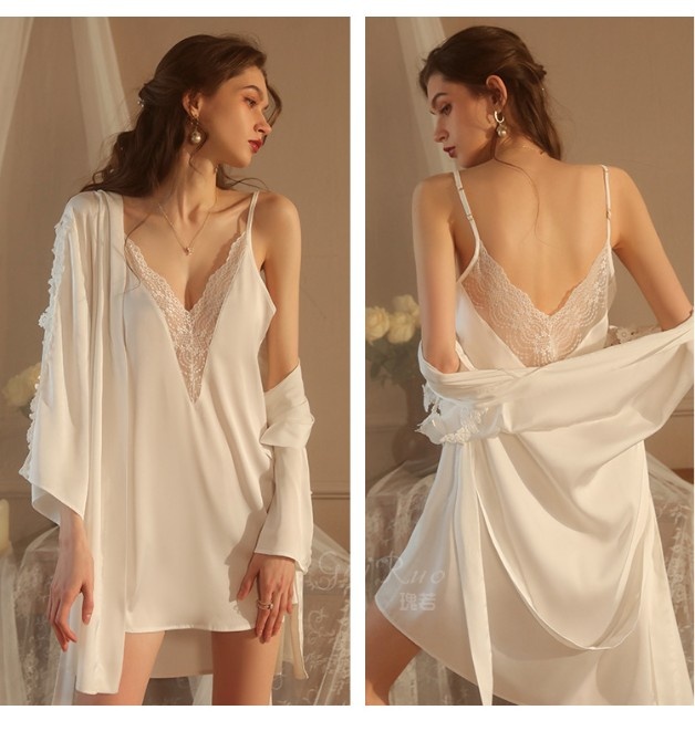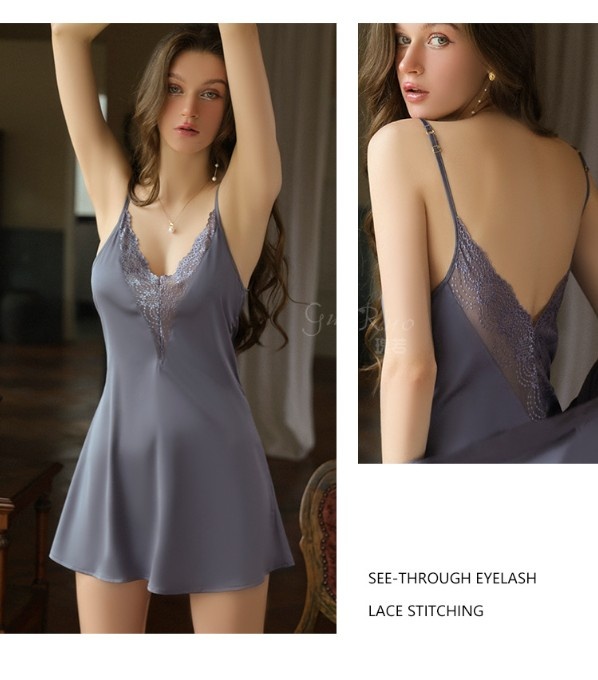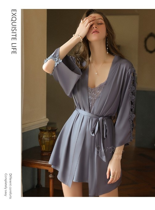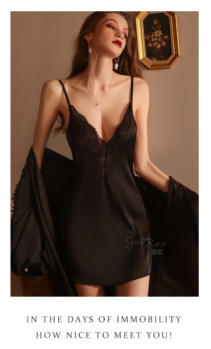睡裙轻柔网纱深V收腰显瘦透气吊带睡裙女简约外袍家居套装2133